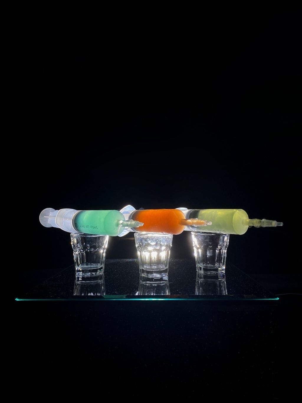 - Pfizercollada (Pineapple Juice, Bacardi Rum, Blue Curaco, Malibu, Sweet & Sour Syrup)